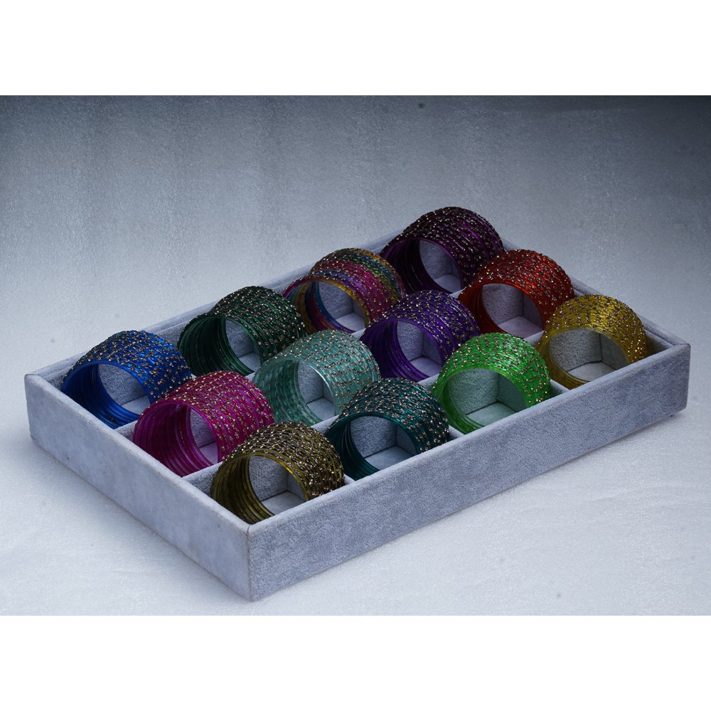 Crafted from high-quality glass material, the bangles are lightweight and comfortable for long wear. The elegant display tray keeps each color set neatly organized and protected, allowing you to easily choose the perfect bangles for your look.